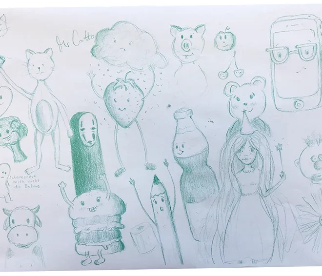 Arbeitsbeispiele aus dem Fach Illustration/Zeichnen Programme: Adobe Illustrator + analoges Arbeiten (Copic Marker, Bleistift, …)